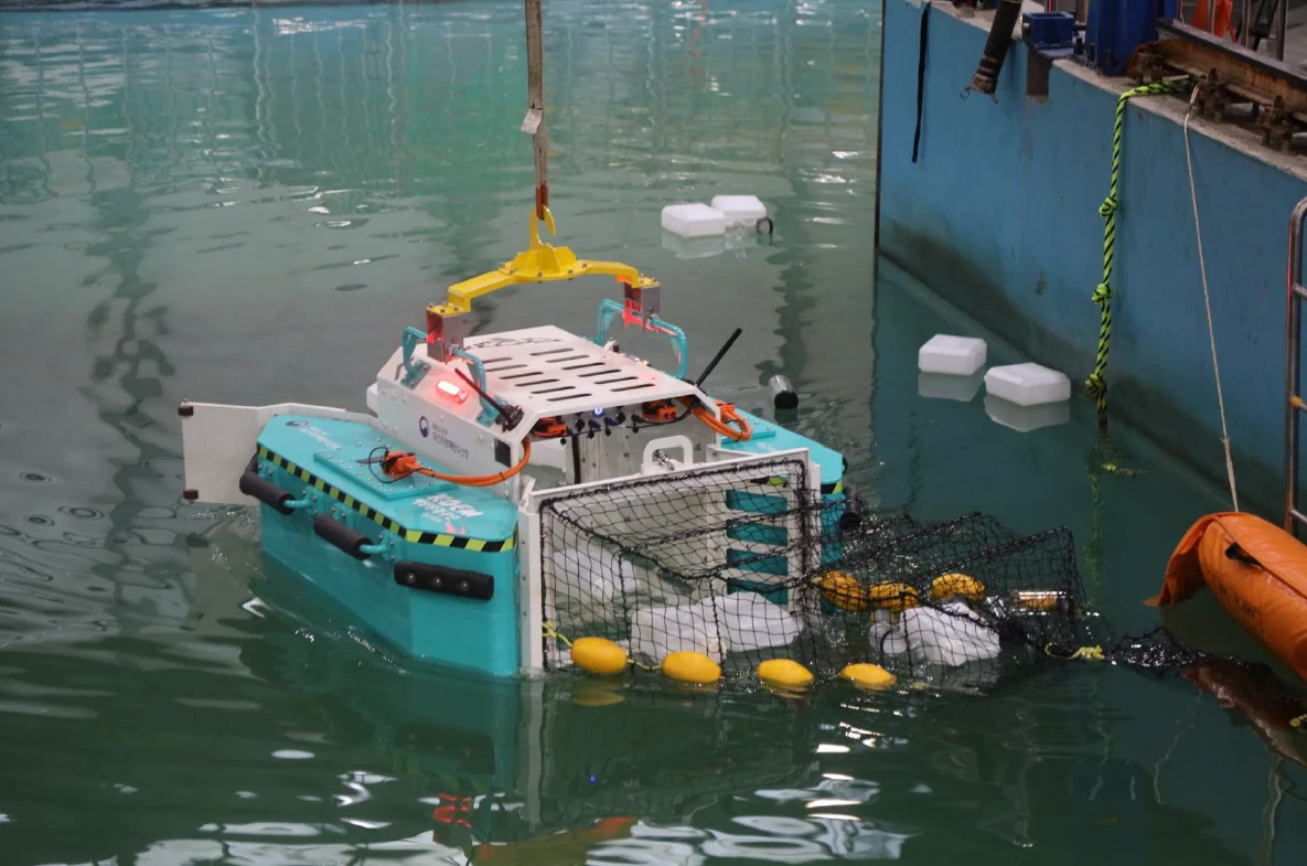 The system includes three specialized robotic units: Module-M for oil recovery, Module-F for automated oil boom deployment, and Module-C for debris collection. Together, they enable faster spill containment, recovery, and cleanup in ports, harbors, and confined waterways while reducing the need for manual response.
